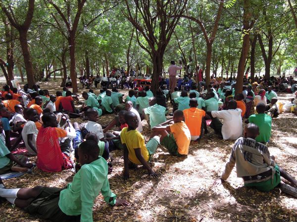AlbertI Loki har man nyligen identifierat drygt 850 OVC (föräldralösa eller speciellt utsatta barn). Trettioåtta av dessa går på vår skola och får hjälp genom vårt ”Vulnerable Children” projekt. I går hade AIC-kliniken (som vi samarbetar med) ett stort ”event” här intill, där man inbjudit ett 150-tal av dessa barn med familjer. Temat var ”Shoes for Health”. Eventet var en del i ett större initiativ i Kenya, finansierat av US AID, där man belyser vikten av att använda skor som skydd mot en lång lista av fula småkryp, som kan ta sig in i kroppen och förpesta hälsan, inklusive ormbett.