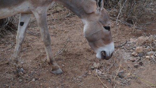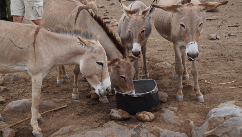 Lite längre fram kommer en mindre flock med åsnor. Dom ser alla påtagligt magra ut med revben som lätt kan räknas. När jag ser en av åsnorna bita av en alldeles torr och till synes död liten buske förstår jag att djuren har det svårt – och naturligtvis människorna också!