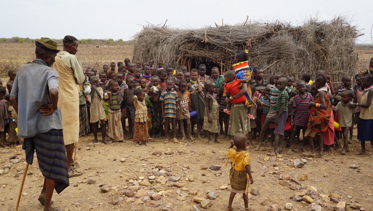 Mr Akuta pekar på ett antal yngre barn i skaran som omger oss och säger: Hade inte ni kommit så snabbt i fjol med er hjälp så hade dessa barn inte levt idag. Vi är väldigt tacksamma!