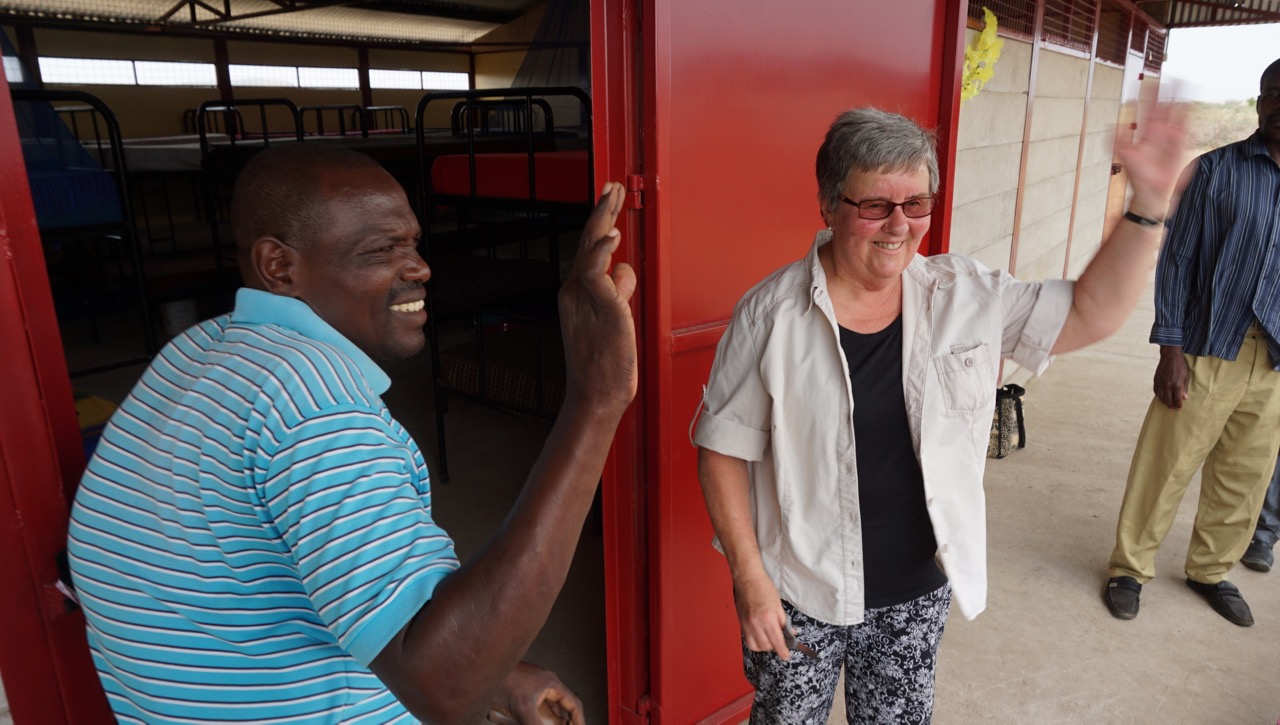 Under Maud och Agnetas besök hann vi också inviga en av våra boarding-byggnader. Maud och Michael Areman, en av våra trogna medarbetare i LEDO och min högra hand i organisationen, klippte bandet till 8:ans sovsal. Hela grundskolan satt som ljus i det vassa solljuset. Rektorn och Birgitta höll fina tal och sen blev det full fart på pojkarna att flytta sina sängar, myggnät, lådor och annat till sitt nya hem – under terminerna! Sjuan flyttar in nu i veckan. Flickornas blir snart inflyttningsklar också. En boarding i det här området för de äldre eleverna betyder oerhört mycket. Man kan få studiero, ha ljust på kvällarna, få hjälp av varandra och för flickorna betyder det en avsevärd lägre risk att bli tagen ur skolan för att bli bortgift eller att måsta ta hand om hushåll, djur, småsyskon osv.