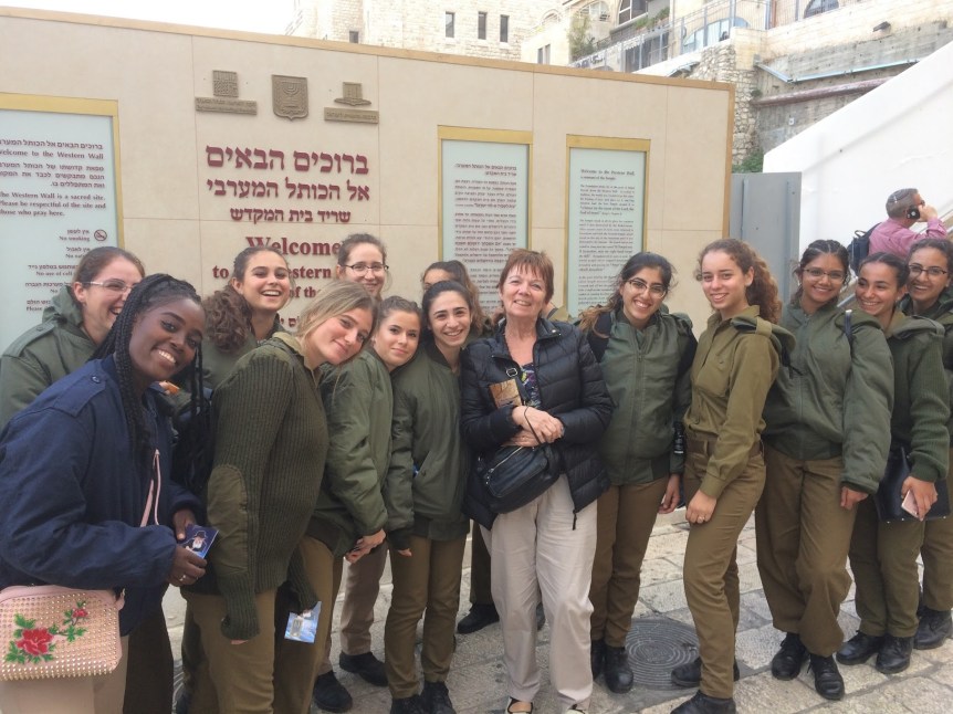 A tuff girl flaked by tuff Israeli lady soldiers – All young Israelis have to do 3 years of military service following their high school