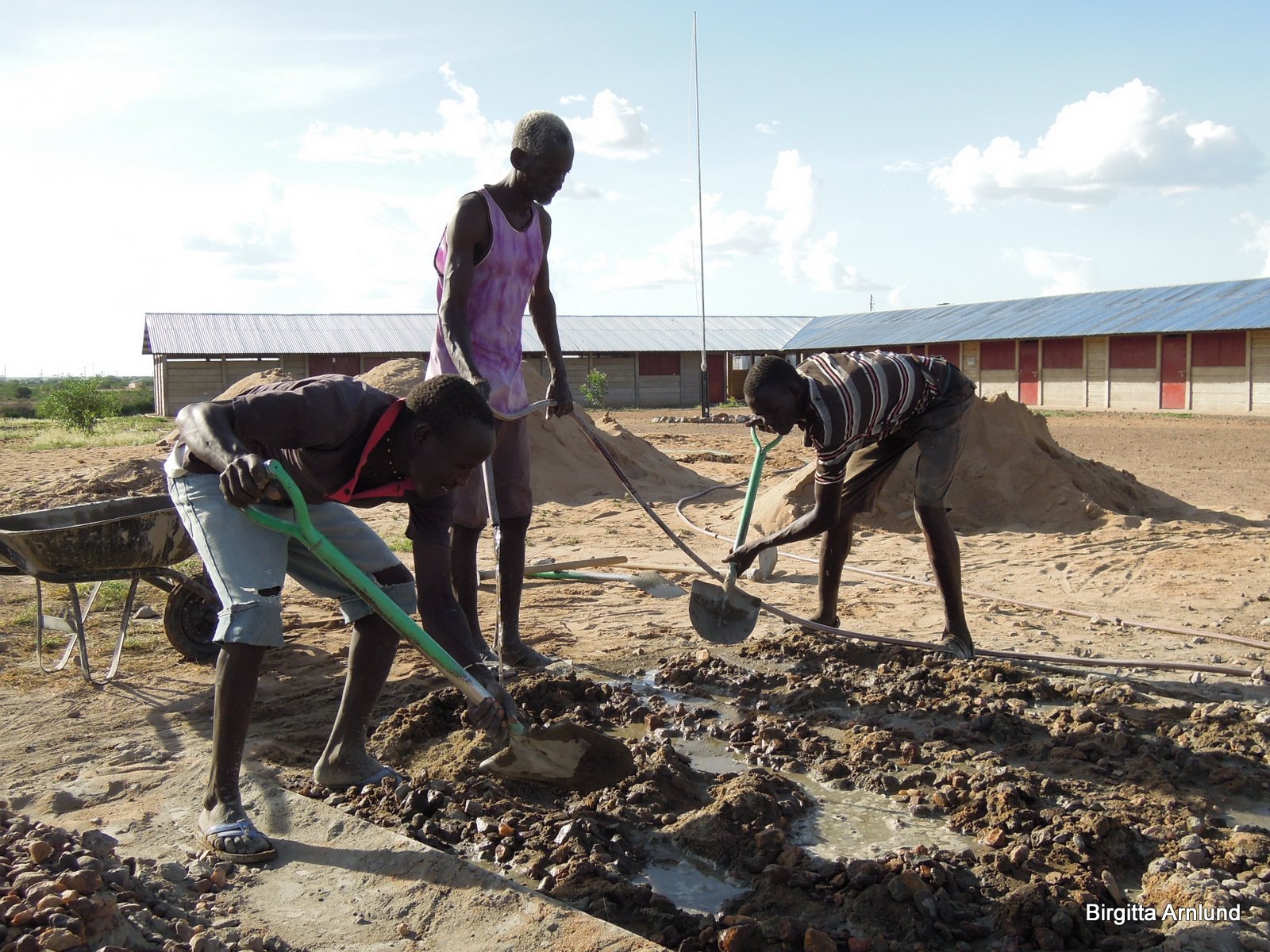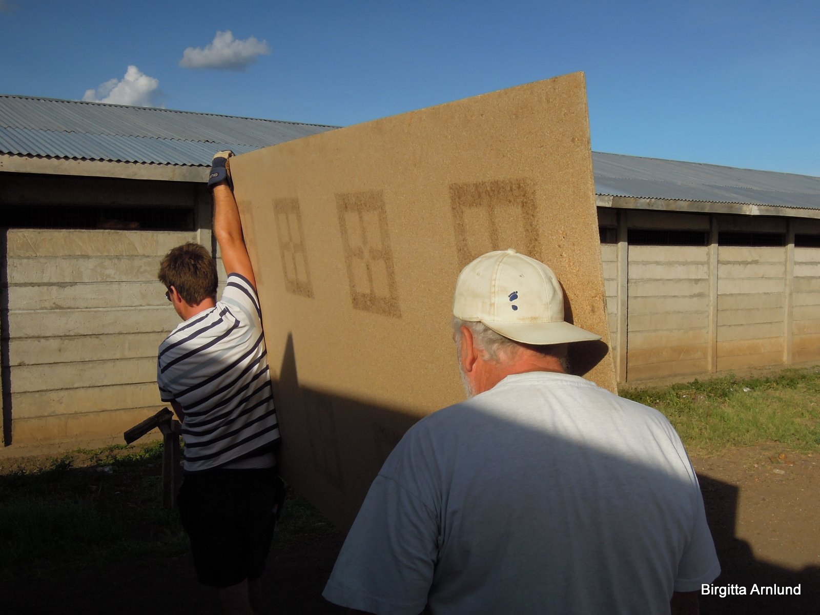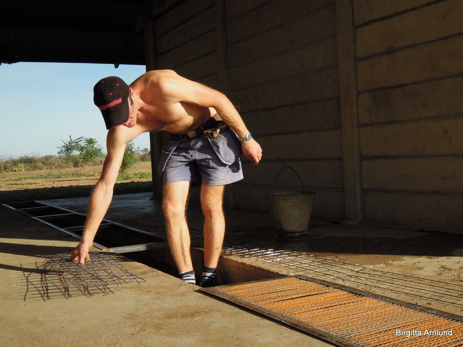 Fantastic! Gunnar Jonsson (69) an ”old” friend since many years, Erik Hellström (24) a new friend since this summer, my two nephews Mattias (30) and Erik (22) have made themselves available. Gunnar and Erik 1 (that’s how we call him) are here for 3 months and Mattias and Erik 2 for one month. Sent from heaven! KeA not least is happy for getting practical help. There are lots of tasks and challenges not least at the school. A quite different way of living for all four and much hotter than they are used to. But they seem to enjoy the heat as well as hard-to-flush toilets, rats on the roof, to be surrounded by children when working and to eat ugali, sukumawiki, kihimo and chapati. They don’t shun the challenge of molding work tops for the new school kitchen, put up partition walls between the classrooms, welding grids to put on drainage gullies and much more.