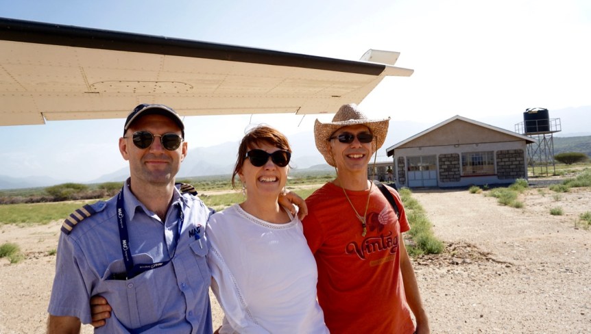 Our new friends Charlotte and Per from Denmark, working in South Sudan. Here with our MAF pilot of the day, Ben.